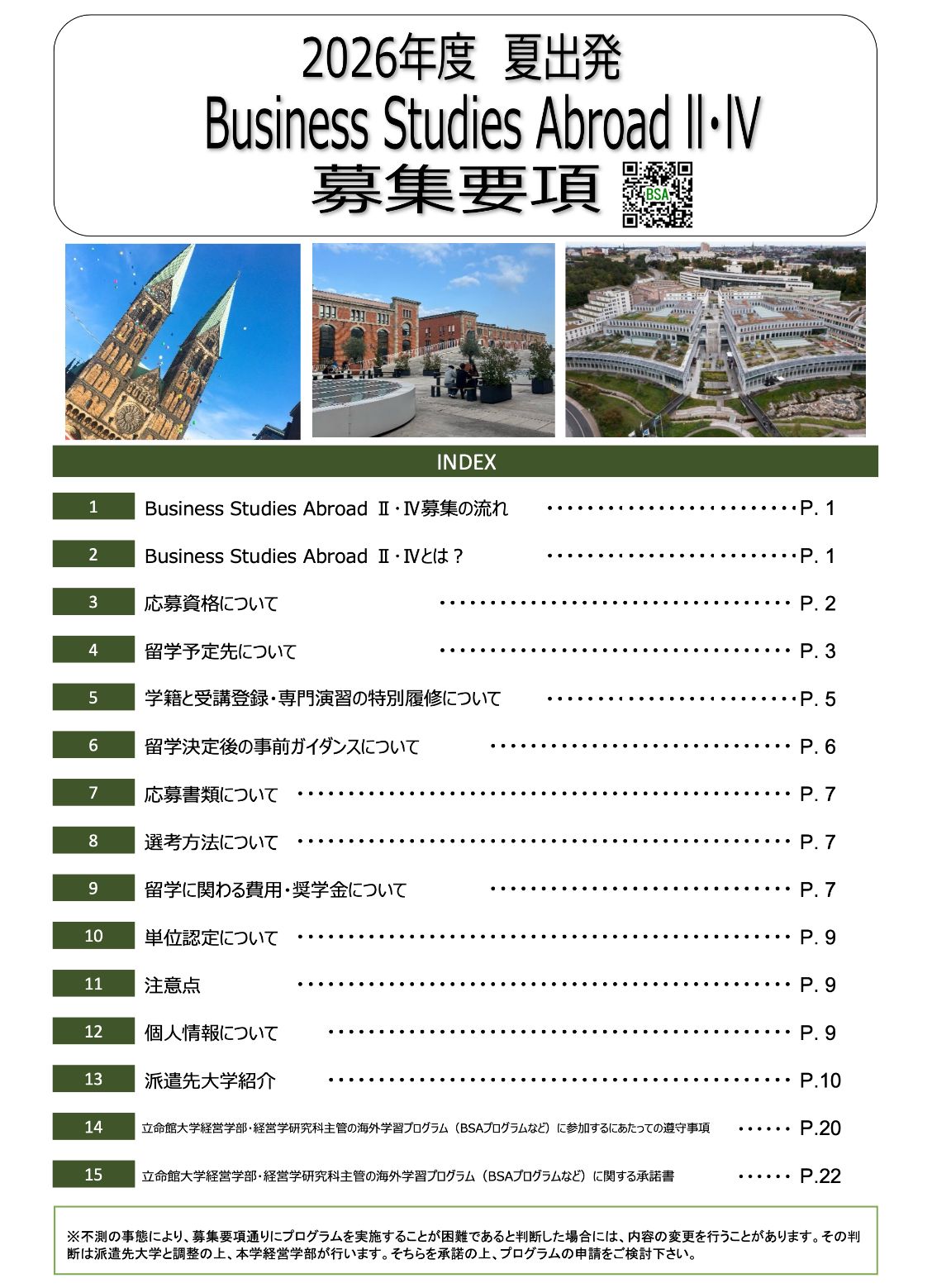2026年度夏出発BSAII・IVの「募集要項」と「応募書類」をアップしました。