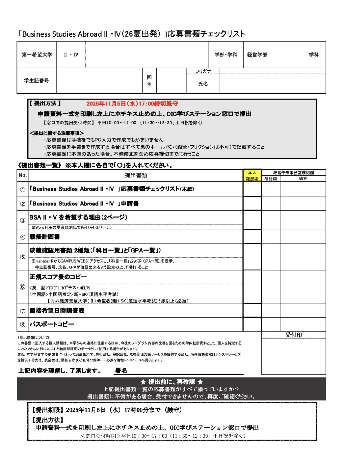 今回は2025年度夏出発BSAII・IVの「募集要項」および「応募用紙」をアップしています。